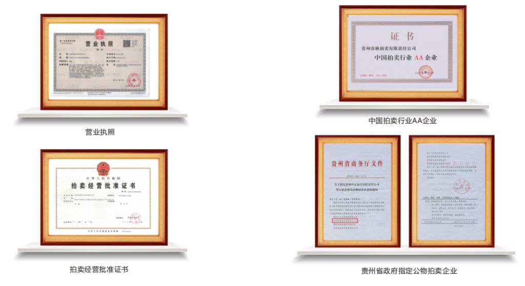 貴州春秋拍賣(mài)有限責(zé)任公司,于2005年1月經(jīng)貴州省商務(wù)廳、貴陽(yáng)市工商行政管理局批準(zhǔn)正式成立,注冊(cè)資本200萬(wàn)元。公司是首批獲得拍賣(mài)經(jīng)營(yíng)批準(zhǔn)證書(shū)的中國(guó)拍賣(mài)行業(yè)AA企業(yè)、中國(guó)拍賣(mài)行業(yè)協(xié)會(huì)理事單位、貴州省人民政府指定公物拍賣(mài)企業(yè)、貴州省拍賣(mài)行業(yè)協(xié)會(huì)副會(huì)長(zhǎng)單位、貴州省省級(jí)守合同重信用單位。公司自成立起就制定了具有前瞻性的發(fā)展戰(zhàn)略,制定了穩(wěn)固貴州省頂級(jí)拍賣(mài)企業(yè)的計(jì)劃和思路,立志成為全國(guó)拍賣(mài)龍頭企業(yè)和標(biāo)桿企業(yè)。