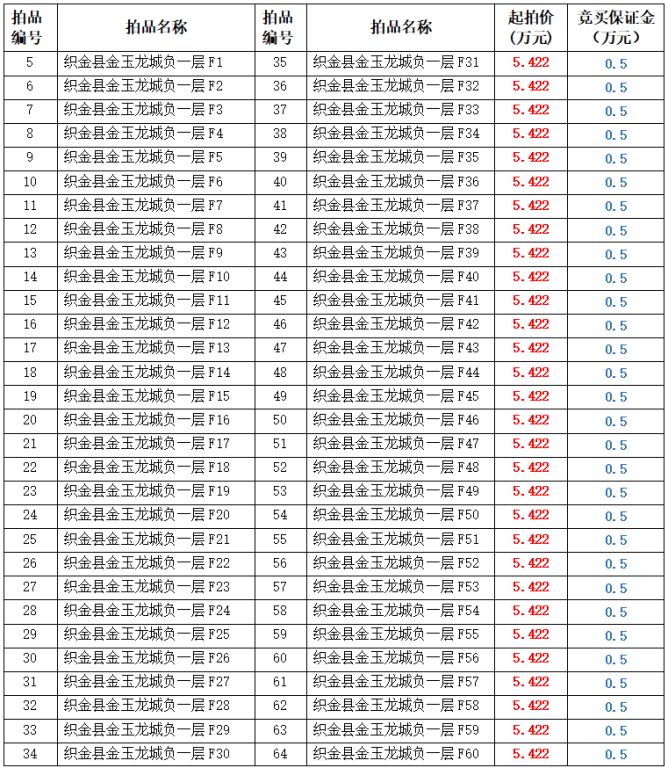 拍品編號(hào)5-276號(hào):畢節(jié)市織金縣金玉龍城負(fù)一層停車位