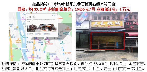 6、都勻市新華東巷石板街右起2號門面3年租賃權(quán)(面積約33.2㎡);