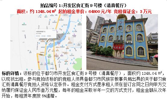 1、都勻市開發(fā)區(qū)食匯街9號樓(清真餐廳)5年租賃權(quán)(面積約1248.04㎡);