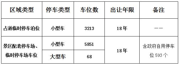 黃果樹風(fēng)景名勝區(qū)公共停車場出讓經(jīng)營權(quán),車位數(shù):9132個(gè),出讓年限:18年。