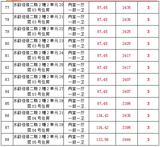 2、水韻佳緣82套住宅房產(chǎn),建筑面積:87.45—128.24㎡,起拍價:2373—2582元/㎡;