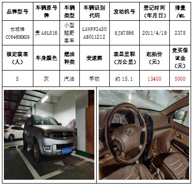 拍品編號(hào)4:長(zhǎng)城牌CC6460KM29小型越野客車(chē)一輛