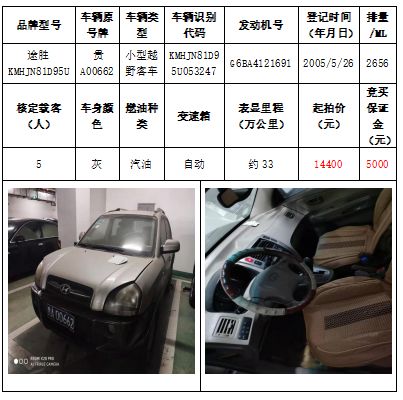 拍品編號(hào)3:途勝KMHJN81D95U小型越野客車(chē)一輛