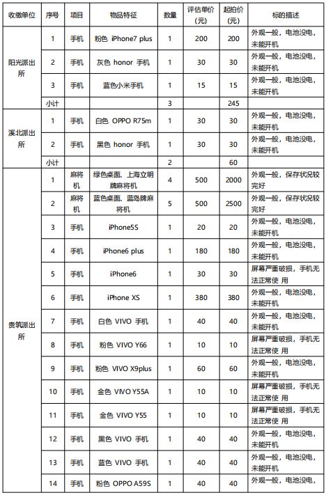 6、手機(jī)、麻將機(jī)、打印機(jī)一批拍賣成交后,買受人需要到貴陽(yáng)市公安局花溪分局領(lǐng)取標(biāo)的物,提取運(yùn)輸費(fèi)用由買受人自行承擔(dān)。