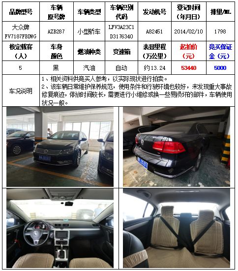 拍品編號(hào)2:大眾牌FV7187FBDWG小型轎車一輛