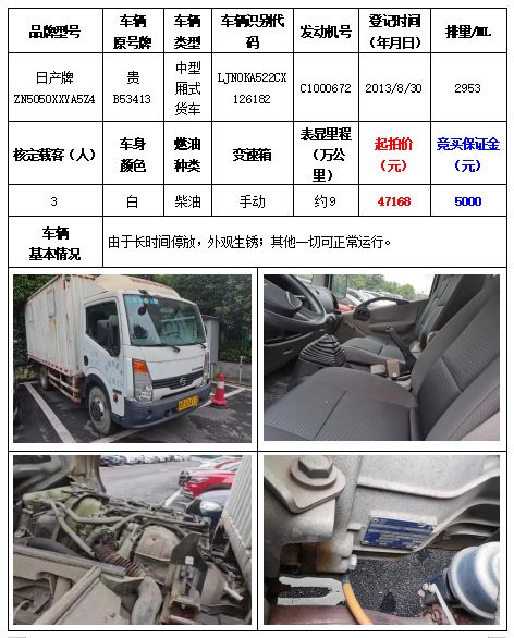 拍品編號(hào)5:日產(chǎn)牌ZN5050XXYA5Z4中型廂式貨車一輛