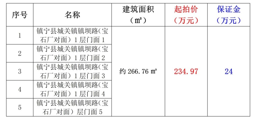 【已結(jié)束】鎮(zhèn)寧縣商鋪、住宅、商業(yè)展位拍賣公告