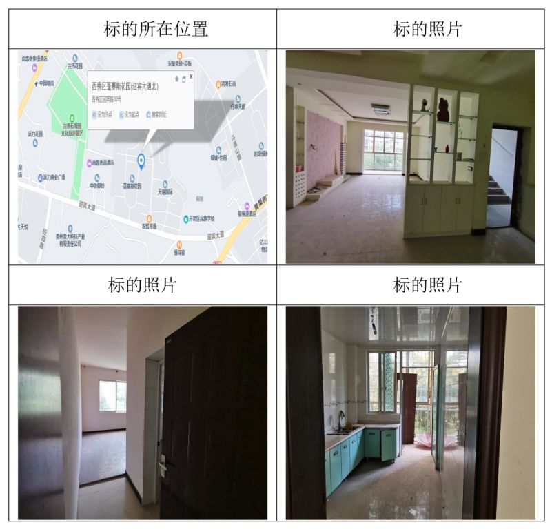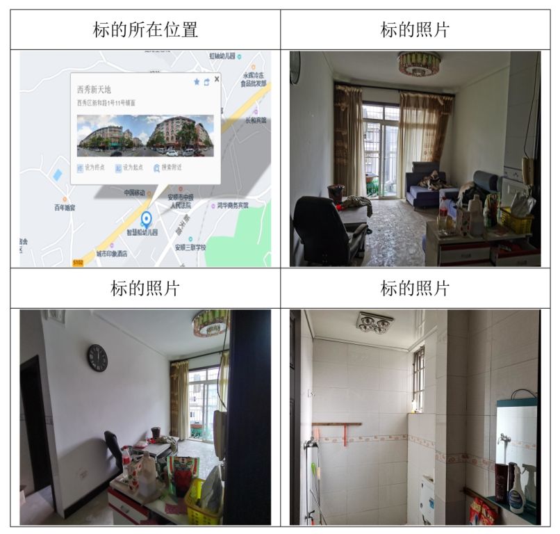 標(biāo)的位于西秀區(qū)迎賓路蓬賽斯花園小區(qū),總樓層數(shù)為7樓,標(biāo)的位于2樓,三室二廳一廚二衛(wèi)、一梯兩戶、步梯房,現(xiàn)為空置狀態(tài),裝修為簡裝。