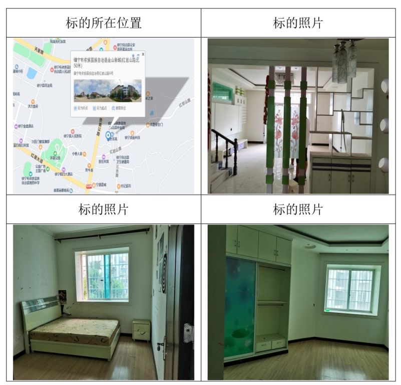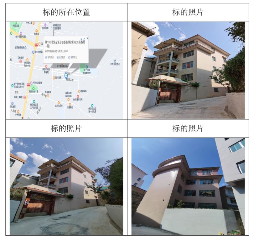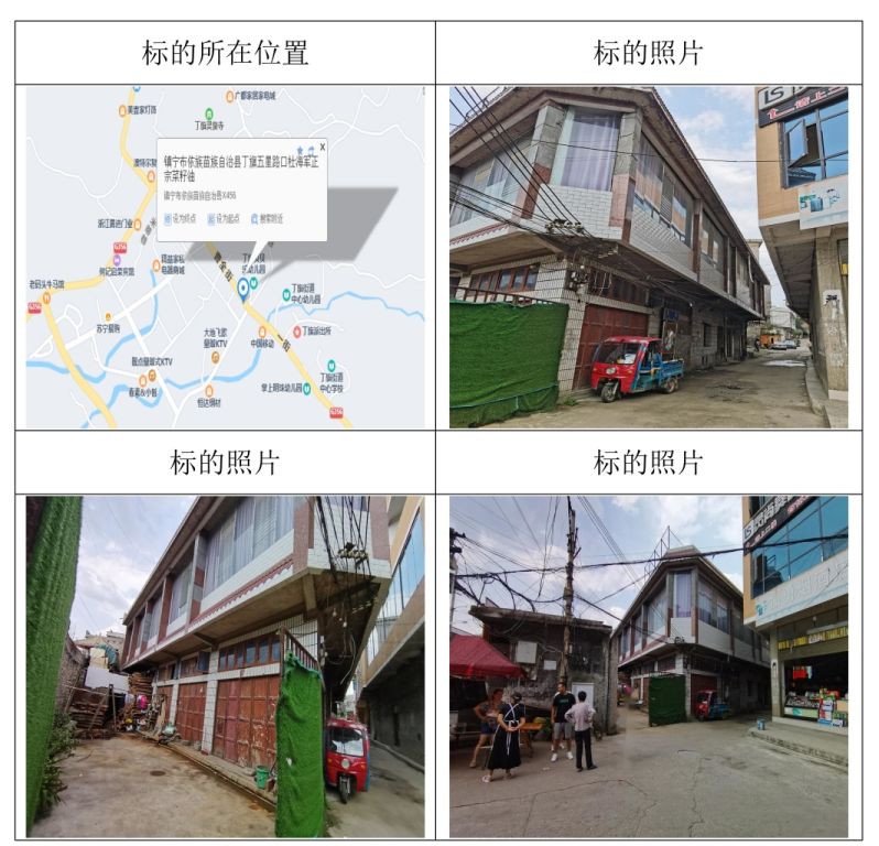該標(biāo)的位于鎮(zhèn)寧布依族苗族自治縣丁旗五星路口,屬于自建房,建筑面積為約為518.42㎡,建成年限為2005年,建筑結(jié)構(gòu)為混合結(jié)構(gòu),房屋總樓層數(shù)為兩層,房屋所在樓層為1-2層,設(shè)計用途為住宅。