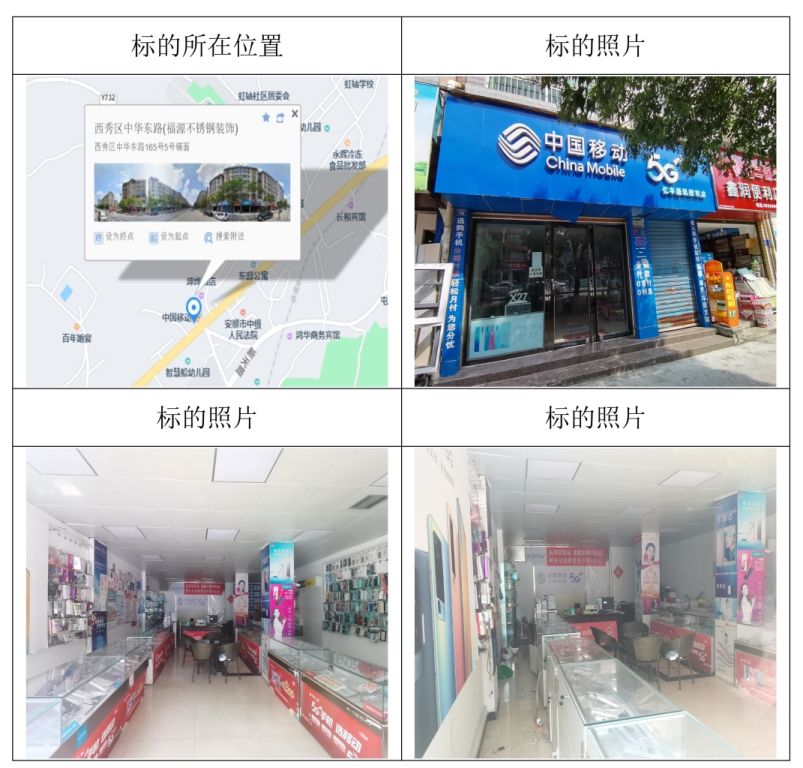 標(biāo)的位于西秀區(qū)中華東路,門面吊頂高約2.6米,門頭寬約5.9米,徑深約13米。建筑面積約為84.28㎡,建成年限為2005年,建筑結(jié)構(gòu)為混合結(jié)構(gòu),設(shè)計用途為商業(yè)。