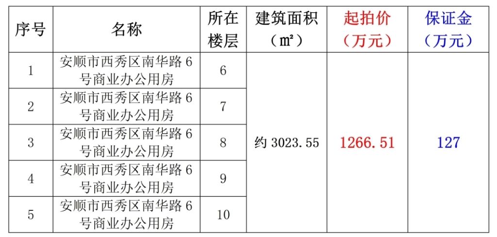 拍品編號10:安順市西秀區(qū)南華路6號商業(yè)辦公用房