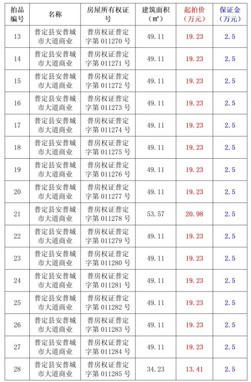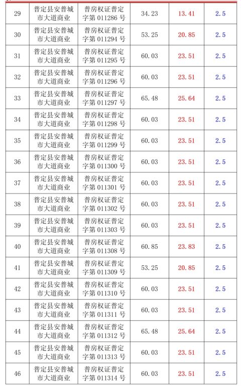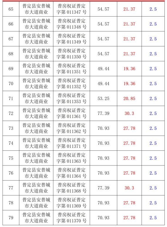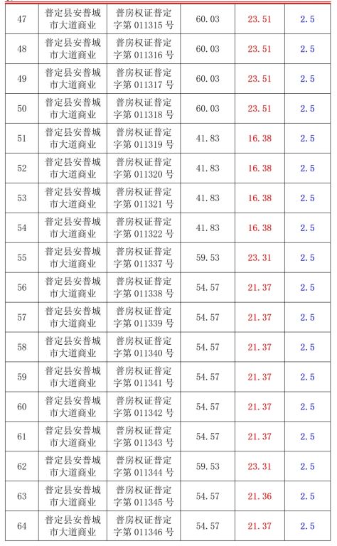 13、拍品編號13-79:普定縣安普城市大道商業(yè)展位67個;建筑面積:約34.23㎡-77.39㎡。