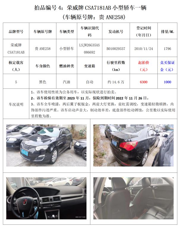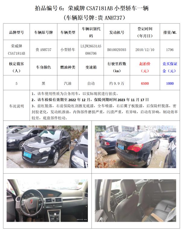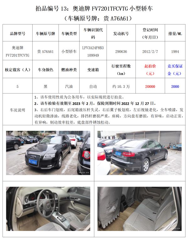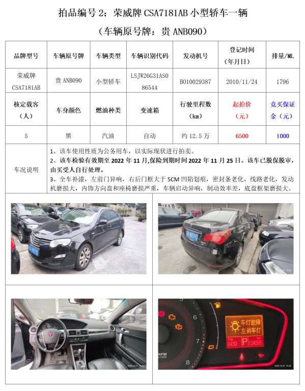 受委托,我公司定于2022年12月16日(星期五)下午14:30在貴州省貴陽(yáng)市中華南路20號(hào)新大陸數(shù)碼廣場(chǎng)10樓D座會(huì)議室公開(kāi)拍賣以下標(biāo)的:
