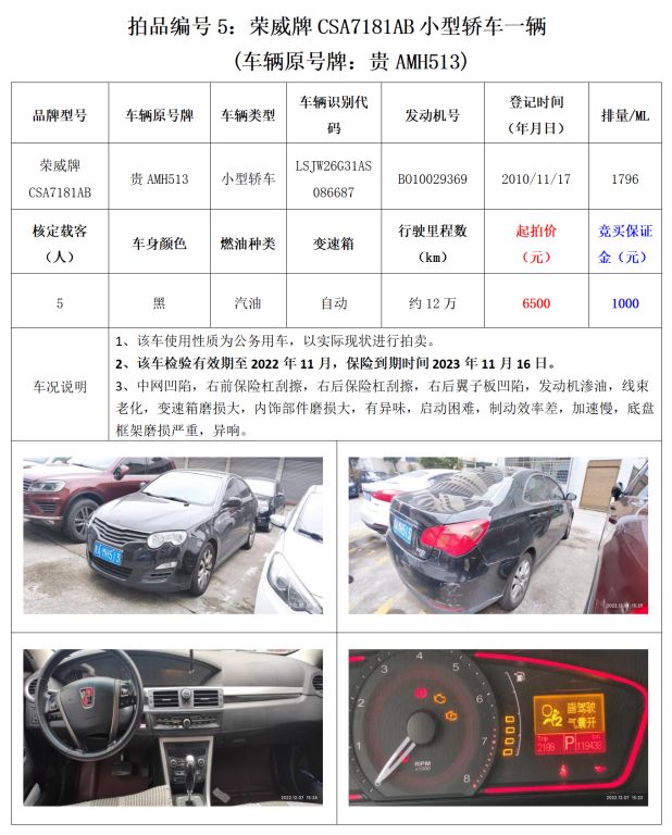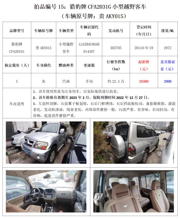 【12月16日】貴陽(yáng)市15輛機(jī)動(dòng)車拍賣公告
