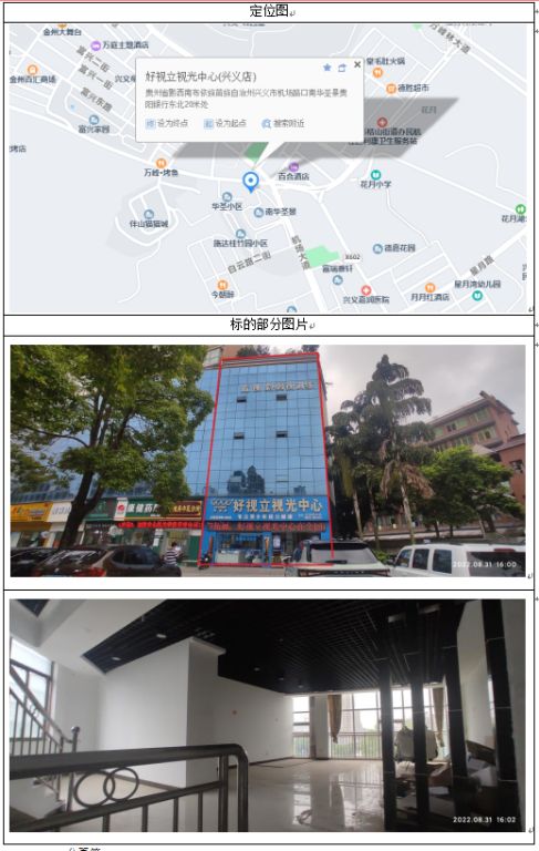 1、標(biāo)的位于興義市民航大道南華圣景4幢107號(hào)房屋,房屋總層數(shù)為16層,標(biāo)的所在層數(shù)為1-4層。產(chǎn)權(quán)證號(hào):黔(2018)興義市不動(dòng)產(chǎn)權(quán)第0016025號(hào),房屋證載建筑面積438.56㎡(專(zhuān)有建筑面積:402.24㎡,分?jǐn)偨ㄖ娣e:36.32㎡。每層房屋建筑面積均為109.64㎡),規(guī)劃用途為商業(yè)服務(wù),框架結(jié)構(gòu)。