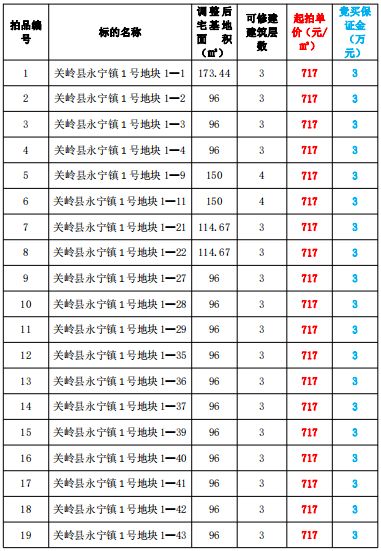 關(guān)嶺縣永寧鎮(zhèn)43宗宅基地,面積:25.26-173.44㎡,起拍價(jià):717-1997元/㎡。