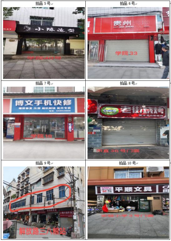 拍品2號至6號標(biāo)的:位于清水大道銅仁附中對面,面積均為:27.5㎡,租賃期均為3年(2023年7月1日至2026年6月30日),附近有車站、醫(yī)院、銀行、酒店、超市、學(xué)校等,交通便利,人流量大。