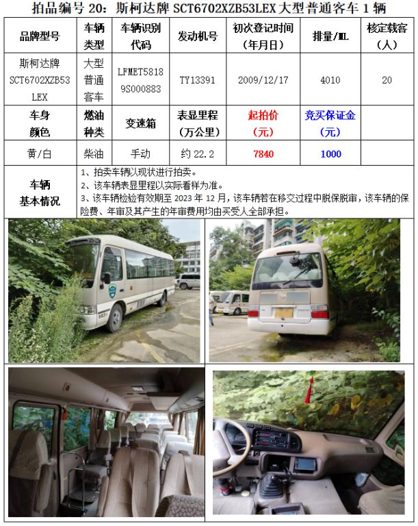 受委托,我公司定于2023年8月25日(星期四)下午14:30時,在貴州省公共資源交易中心開標室多功能廳(貴陽市南明區(qū)遵義路)公開拍賣以下標的: