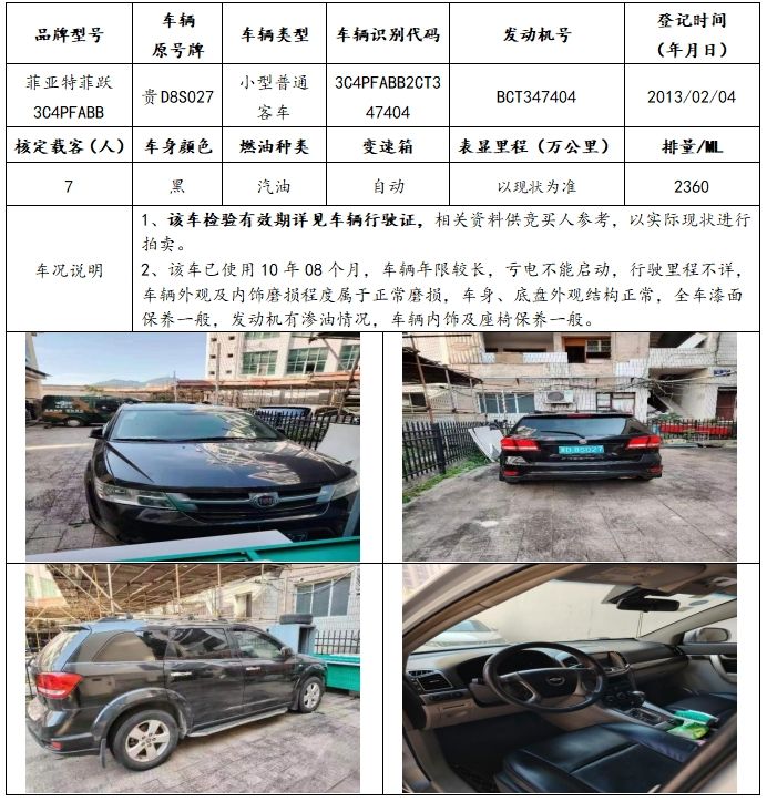 【已結(jié)束】菲亞特牌、??怂古?、雪佛蘭牌、昊銳牌等共4輛機(jī)動(dòng)車(chē)(整體拍賣(mài))拍賣(mài)公告