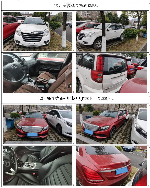 拍品編號1:保時捷凱宴、寶馬、梅賽德斯-奔馳牌、奧迪、別克、雅科仕、東風(fēng)日產(chǎn)牌、江淮牌、大眾寶來牌、長城牌等車輛,共計20輛(整體拍賣)