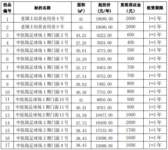 【03月15日】遵義市習(xí)水縣老國土局4號、5號營業(yè)用房和中醫(yī)院對面足球場部分門面等經(jīng)營性資產(chǎn)公開招租電子競價公告