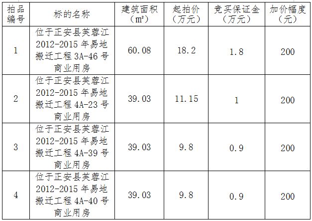 【07月31日】位于貴州省遵義市正安縣芙蓉江 2012-2015 年易地搬遷工程 3A-46 號、4A-23 號、4A-39 號、4A-40 號商業(yè)用房拍賣項(xiàng)目電子競價公告