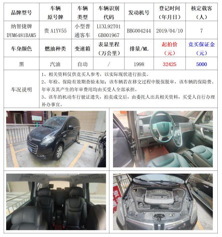 5、納智捷牌DYM6481BAM5小型普通客車1輛。
