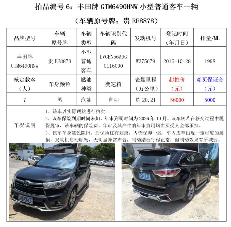 【05月29日】機(jī)動(dòng)車(chē)拍賣(mài)公告