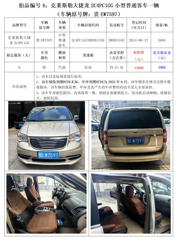 4、克萊斯勒大捷龍2C4PC1GG小型普通客車(chē)1輛;