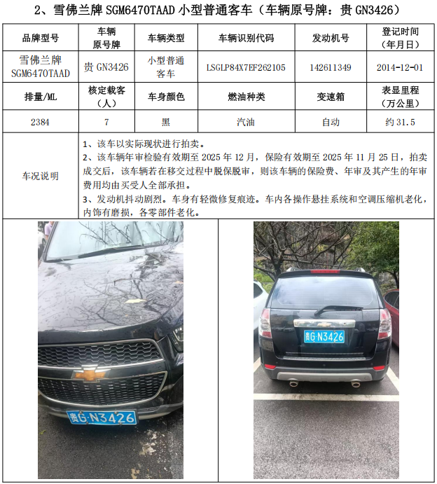 3、別克牌SGM6521ATA小型普通客車1輛、雪佛蘭牌SGM6470TAAD小型普通客車2輛,共計(jì)3輛,整體拍賣,起拍價(jià):28600元,競(jìng)買保證金:5000元。