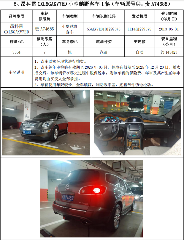 拍品編號(hào)1:普瑞維亞小型普通客車(chē)1輛、奧迪牌小型轎車(chē)2輛、昂科雷小型越野客車(chē)2輛,共計(jì)5輛,整體拍賣(mài)